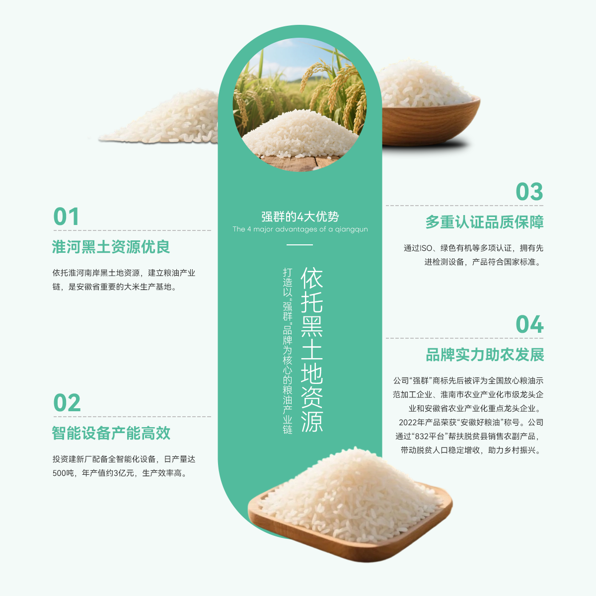 壽縣強群糧油貿(mào)易有限公司成立于2011年,座落在淮南市壽縣澗溝鎮(zhèn),是一家集種植、加工、收儲、銷售于一體、以生產(chǎn)中、高檔質優(yōu)、特色類大米為主的綜合性企業(yè)。公司依托準河南岸的黑土地資源,打造以“強群”品牌為核心的糧油產(chǎn)業(yè)鏈,是安徽省重要的大米生產(chǎn)基地。   為響應市場增長需求,公司2021年啟動二期擴產(chǎn)工程,其中新生產(chǎn)廠區(qū)建設投入資金近億元,建設現(xiàn)代化新生產(chǎn)線,總占地面積約4000...